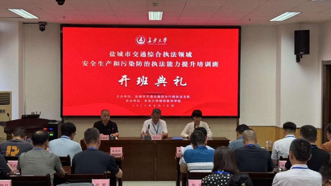 8月17日至23日,由盐城市交通运输综合行政执法支队主办,长安大学承办的“盐城市交通综合执法领域安全生产和污染防治执法能力提升培训班”在南校区交通科技大厦顺利举办。盐城市交通运输综合行政执法支队副支队长黄国庆、长安大学继续教育学院副院长邱旭辉出席开班仪式。来自盐城市交通运输综合行政执法支队的55名干部参加培训。